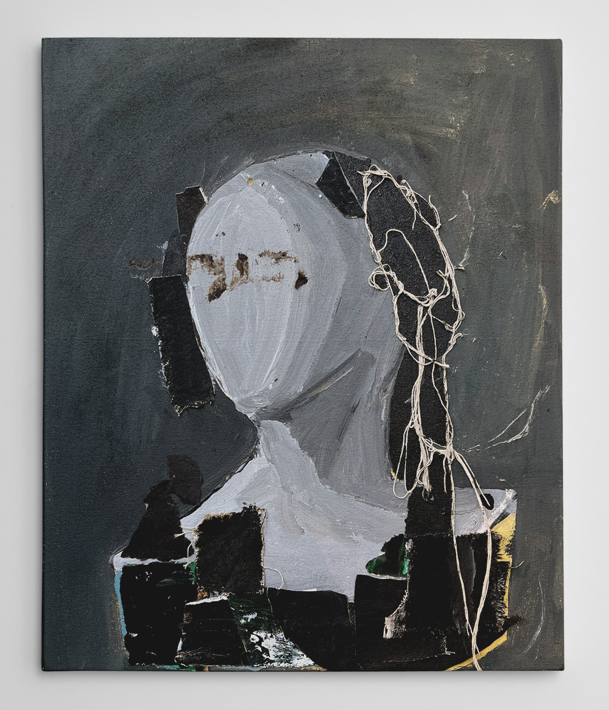 Acrylic,painted paper, painted canvas, canvas string on canvas